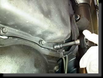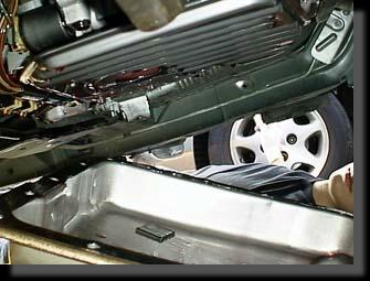 ATFパンは、車体中央に近いところにあり、もぐるのが大変。また、Catalic Converter が直ぐ脇を通っており、すごく熱いです。 |