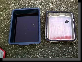 鉄粉をふき取ると、ごく普通の茶色いマグネット板でした。うむ〜、何で縞模様に付着するのかは文系の私にはわからん。(^_^; |