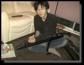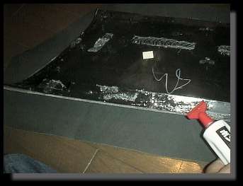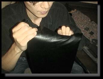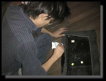 パネルを外したら、革を切ってセメダインを縁に塗り、丁寧に張り付けます。 |